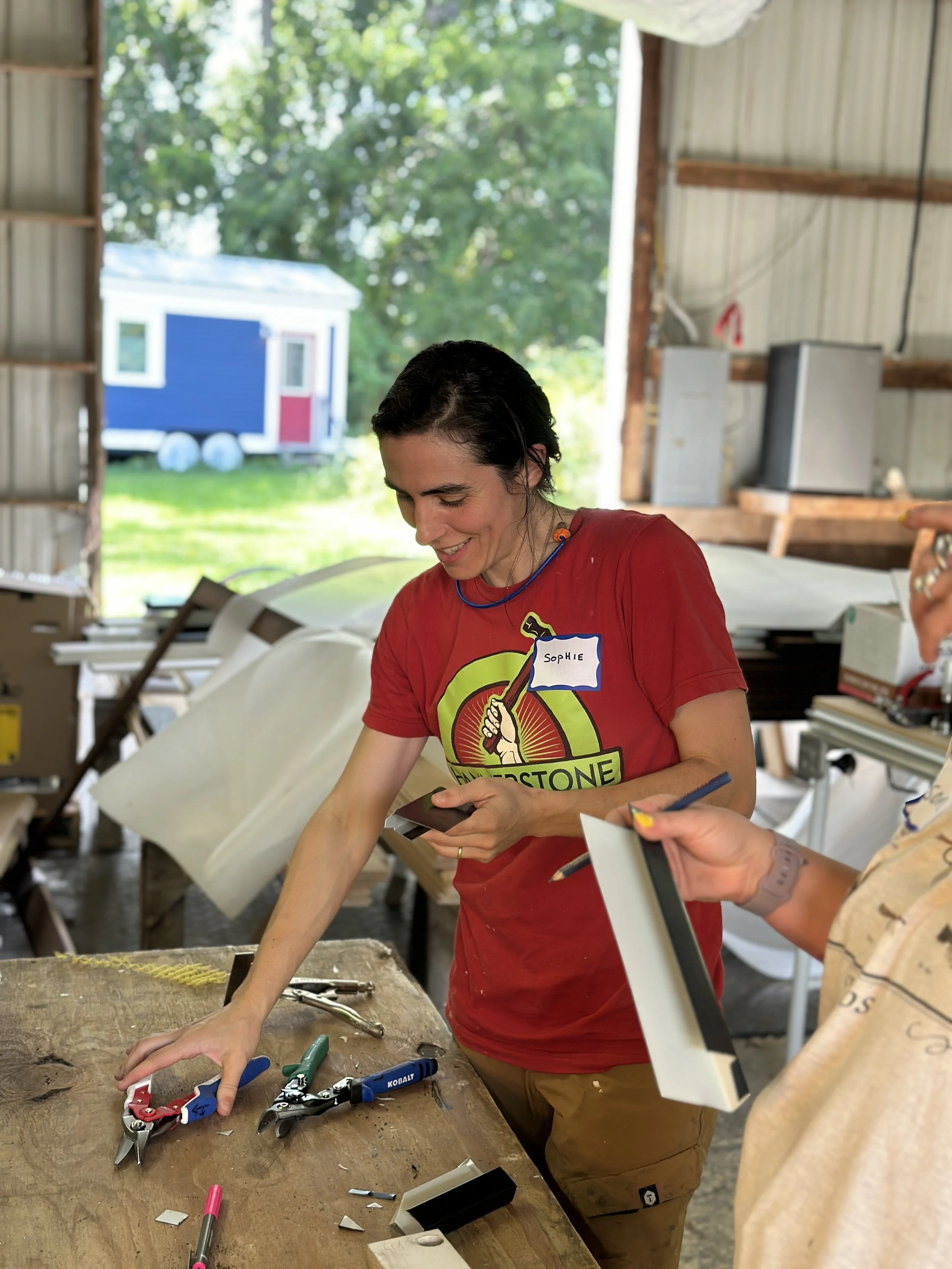 In January of 2024, we were thrilled to offer Sophie a position on our crew. Initially she joined us part time, but ever since tiny house prep work ramped up in the late spring 2024, she has been a full time member of the crew, and now is indispensable!