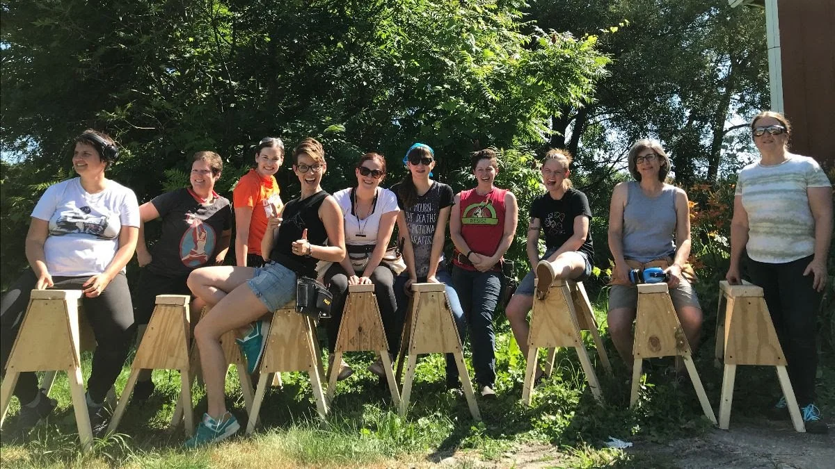 With a small amount of local promotion, the classes filled in just a couple weeks, and by June we were erecting walls and installing windows. The rest is herstory. We learned a ton in those first classes (building sawhorses to learn basic skills was gonna take more than 4 hours!), but we got a lot right: most importantly, that women really want to learn carpentry skills in a supportive environment like the one at Hammerstone.