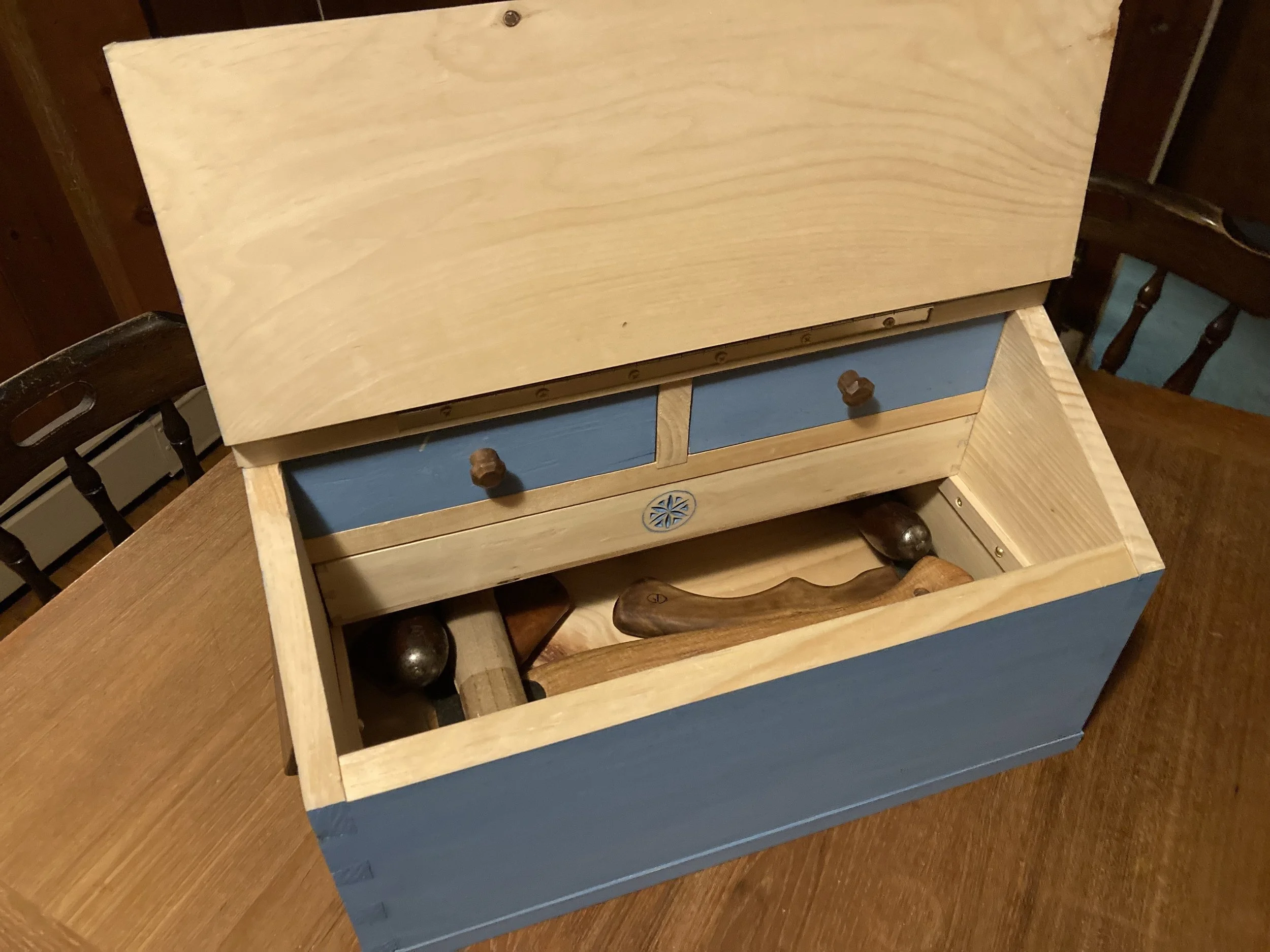I recently finished a small Swedish-style tool chest for green woodworking tools. It was loosely based off some photos and dimensions from Lost Art Press, but scaling it down and adapting it for that set of tools forced me to spend more time making design choices than I usually do, so that was a great learning experience.